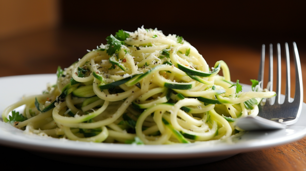 É possível criar fios de abobrinha cortando-as em espiral ou usando um gadget específico para isso, simulando a textura do espaguete tradicional. Recomenda-se salgar as abobrinhas e deixá-las descansar por alguns minutos, para liberarem parte do seu conteúdo líquido e ficarem mais firmes.