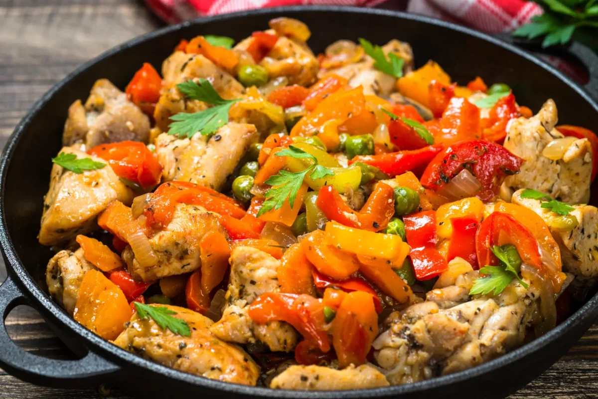 1. Frango ao forno com ervas e legumes