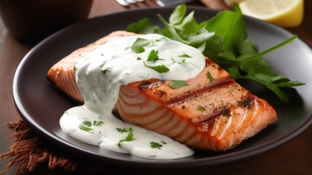 Essa receita de salmão grelhado com molho de iogurte é uma opção saudável e saborosa para uma refeição completa. O molho de iogurte oferece um toque de frescor e suavidade ao sabor marcante do salmão grelhado. É um prato leve e equilibrado que combina proteína com a cremosidade do molho.